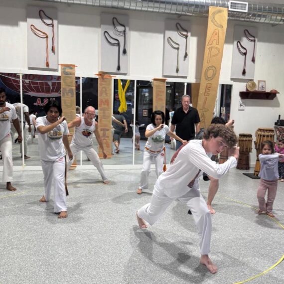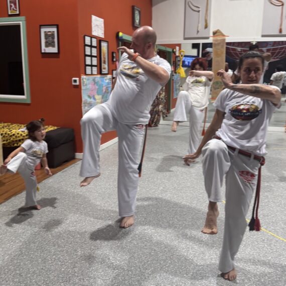 Capoeira is so unique and fun to learn because it is composed by all these many factors: includes mastering it's music (which has a correlation with the different ways we play Capoeira), the language (classes are thought in Portuguese and English) and it's history, which is so, SO rich. Practicing Capoeira it's a hell of a workout, while adding balance, speed and control in every possible muscle of your body. But even better than all of that: Capoeira is for me my family. Come to learn how to fight with style -that's what families are for!