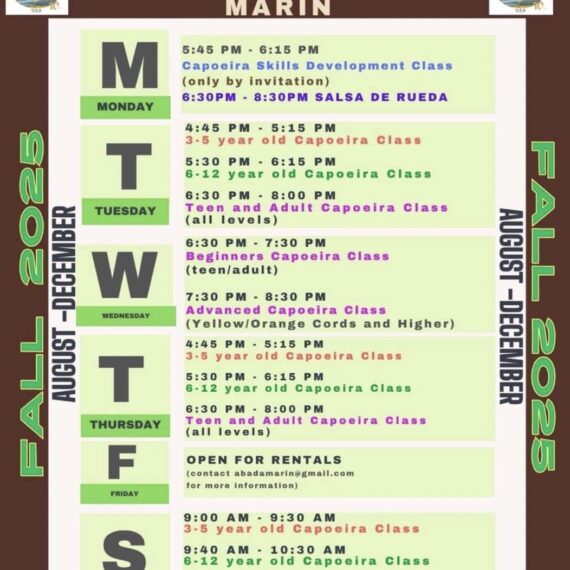 ABADÁ-Capoeira Marin is a fantastic capoeira studio catering to all levels and backgrounds! If you are interested in athletics, music, dance, Brazil, any of the above, this is for you! The instructors are fantastic and especially good with children - our kids both started training at age 3 and they (now nearly 5 and 9) both love it. Treat yourself to something new - you will not be disappointed!