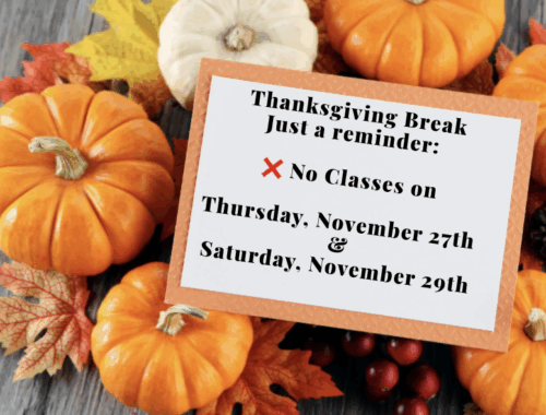 Happy Thanksgiving! Class Schedule