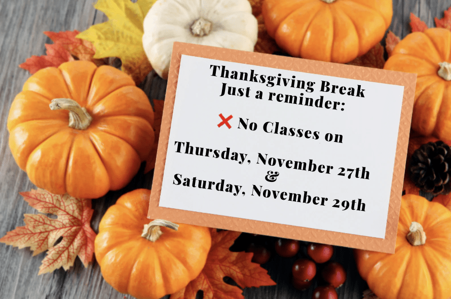 Happy Thanksgiving! Class Schedule