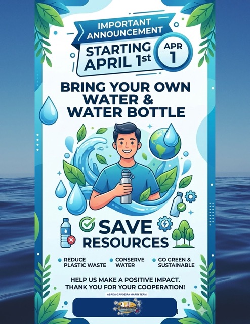 🌿 Community Reminder: Small Actions Make a Big Difference! Starting April 1st, we encourage everyone to bring their own reusable water bottle to class to help reduce plastic waste and conserve natural resources. Be conscious about the impact you leave on the world!